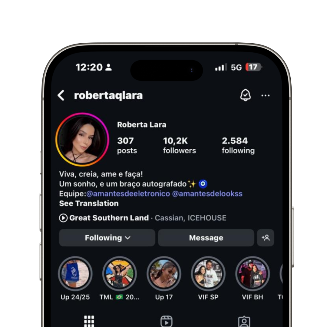 Me chamo Roberta e fiquei conhecida como a garota do braço dos autógrafos, com o maior número de tatuagens de autógrafos de DJs da cena eletrônica mundial. Já são 32 assinaturas, incluindo nomes como Swedish House Mafia, Vintage Culture, Solomun, Anyma, Fideles e Artbat.