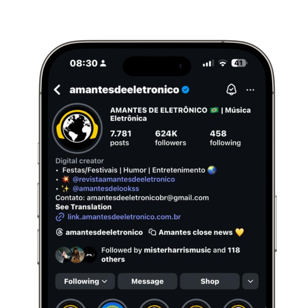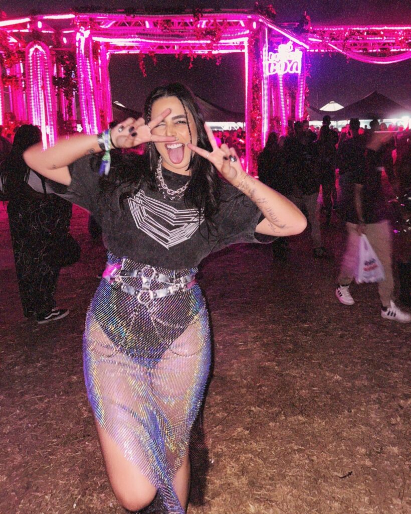 Hoje, sou presença nas principais festas do Brasil, faço parte do time Amantes de Eletrônico e atuo como criadora de conteúdo para eventos e artistas.